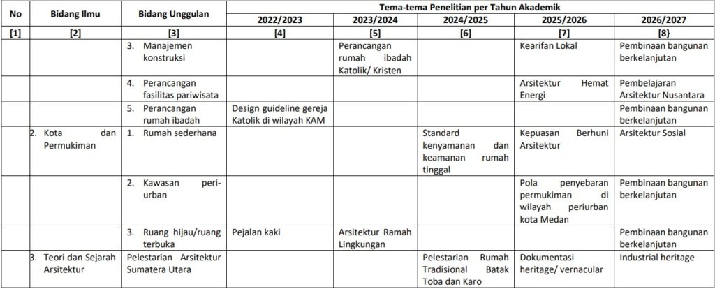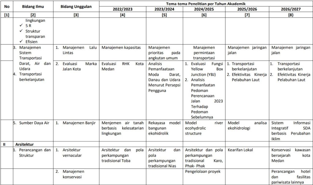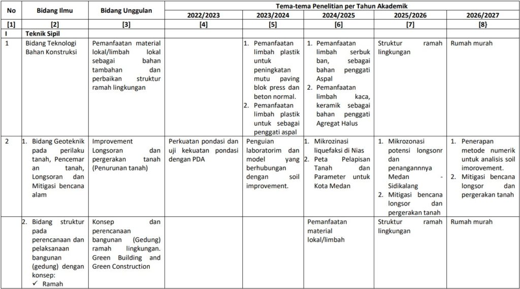Roadmap Universitas Universitas Katolik Santo Thomas membentuk dasar untuk Rencana Penelitian dan Pengabdian kepada Masyarakat Fakultas Teknik. Program Studi telah merencanakan dan mengembangkan topik payung penelitian dan pengabdian kepada masyarakat untuk dimasukkan ke dalam peta jalan ini.